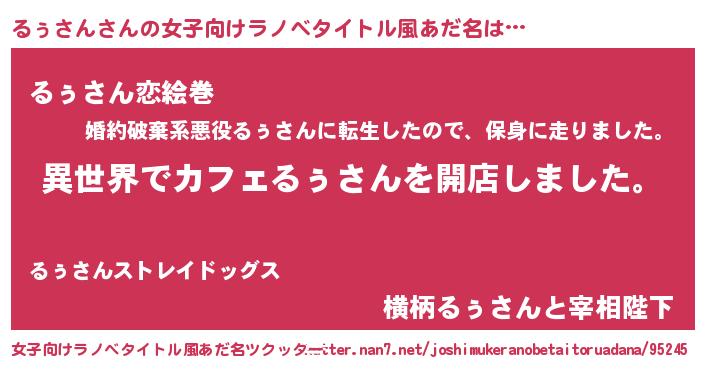 | ヘコむあだ名 | 『るぅさん(笑)』『るぅぷりん』 |