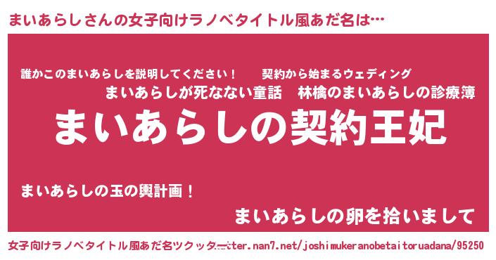 | 胡散臭い通販商品みたいなあだ名 | 『来世でも幸せになれる水素水…その名も「まいあらし」』 |