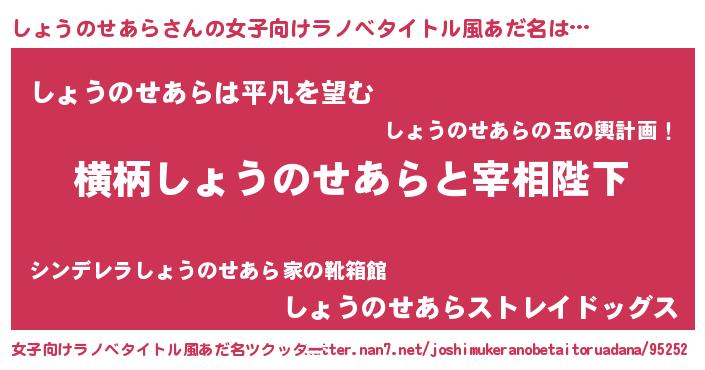 | 意味不明あだ名 | 『とにかく怪しいしょうのせあら』 |