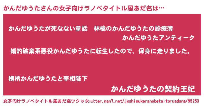 | 男性向けラノベタイトル風あだ名 | 『カンダユウタスレイヤー』 |