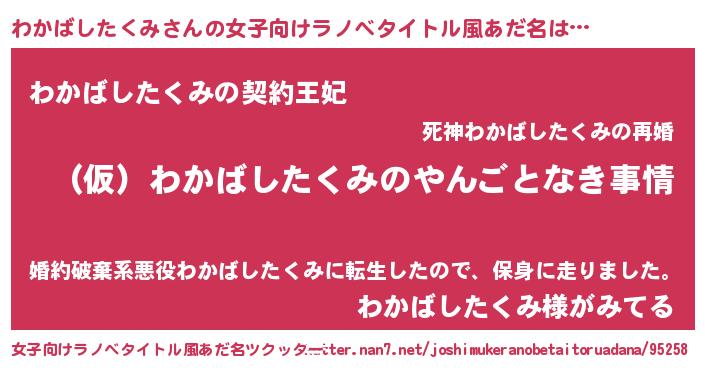 | 男性向けラノベタイトル風あだ名 | 『わかばしたくみの憂鬱』 |