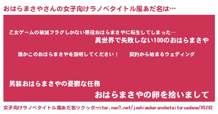 | 胡散臭い通販商品みたいなあだ名 | 『億万長者になれる水晶球…その名も「おはらまさや」』 |