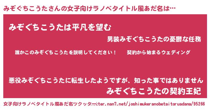 | 男性向けラノベタイトル風あだ名 | 『ミゾグチコウタアートオンライン』 |