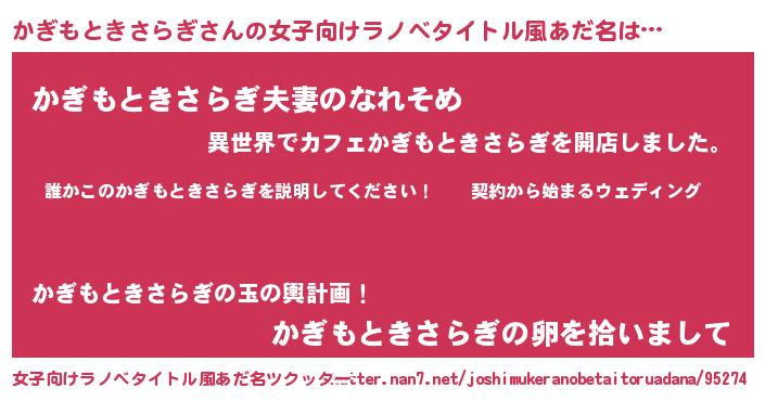 | 男性向けラノベタイトル風あだ名 | 『カギモトキサラギアートオンライン』 |