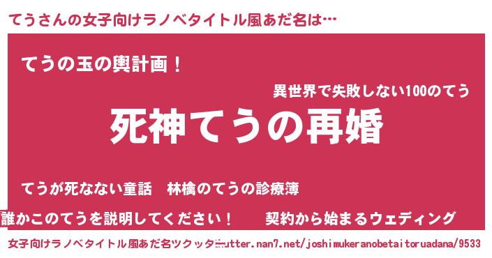 | 男性向けラノベタイトル風あだ名 | 『ノーゲーム・ノーテウ』 |