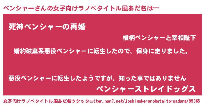 | 自動車の名前っぽいあだ名 | 『ペールスンイス』『ペンR』 |