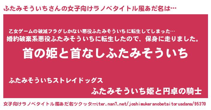 | 男性向けラノベタイトル風あだ名 | 『はたらくふたみそういちさま!』 |