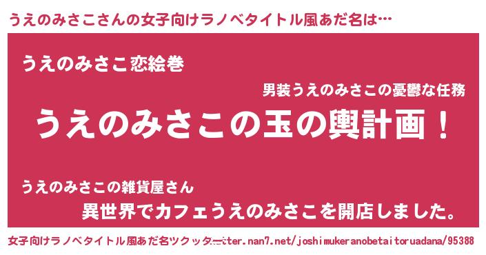 | ヒーロー風カッコイイあだ名 | 『慈愛の使者うえのみさこ』 |