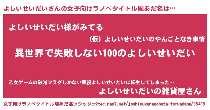 | 意味不明あだ名 | 『永久保存よしいせいだい』 |