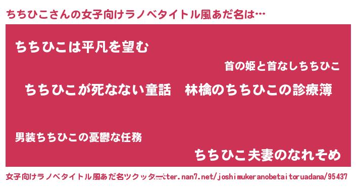 | 男性向けラノベタイトル風あだ名 | 『魔弾の王とちちひこ』 |