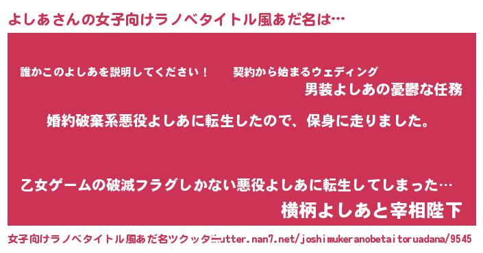| 肩書あだ名 | 『よしあ中将』『よしあ御曹司』 |