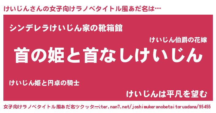 | 胡散臭い通販商品みたいなあだ名 | 『信頼と実績のサプリメント…その名も「けいじん」』 |