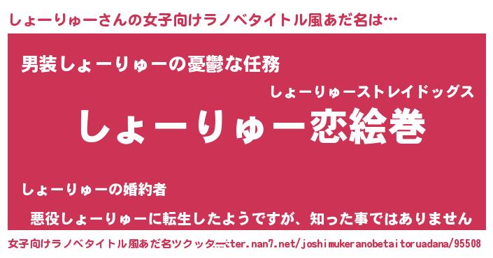 | 男性向けラノベタイトル風あだ名 | 『ノーゲーム・ノーショーリュー』 |