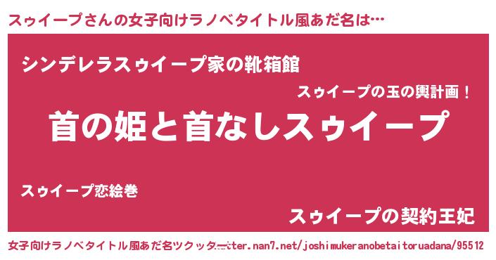 | 男性向けラノベタイトル風あだ名 | 『はたらくスゥイープさま!』 |
