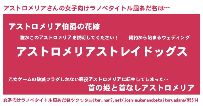 | 男性向けラノベタイトル風あだ名 | 『Re:アストロメリアから始める異世界生活』 |