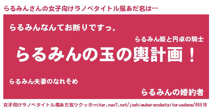 | 可愛いあだ名 | 『らるぷりん』『らるうちぇる』 |