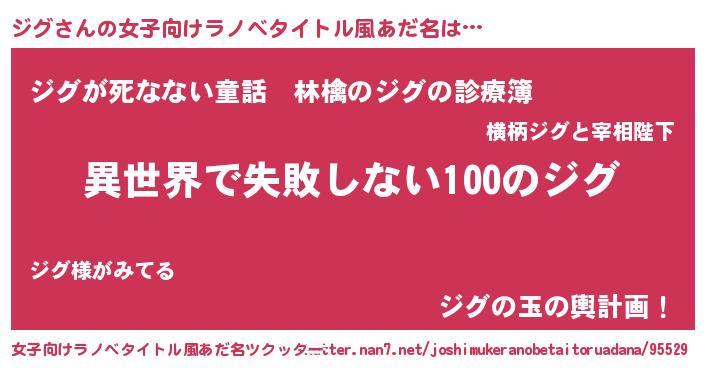 | ヘコむあだ名 | 『ジグ(苦笑)』『ジグっちょ』 |