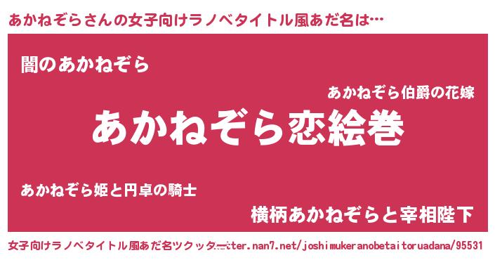 | 男性向けラノベタイトル風あだ名 | 『おまえをオタクにしてやるから、俺をあかねぞらにしてくれ! 』 |