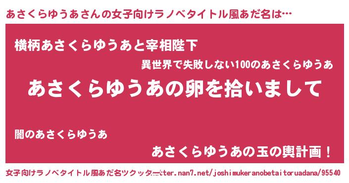 | 意味不明あだ名 | 『とにかく怪しいあさくらゆうあ』 |