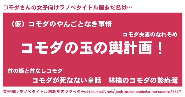 | 男性向けラノベタイトル風あだ名 | 『転生したらコモダだった件』 |