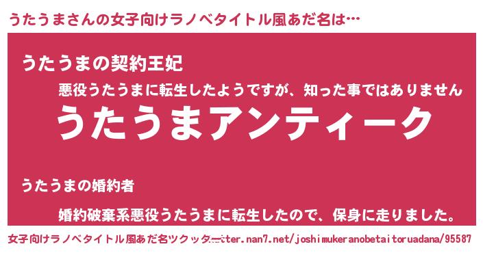 | 意味不明あだ名 | 『自称うたうま』『永久保存うたうま』 |