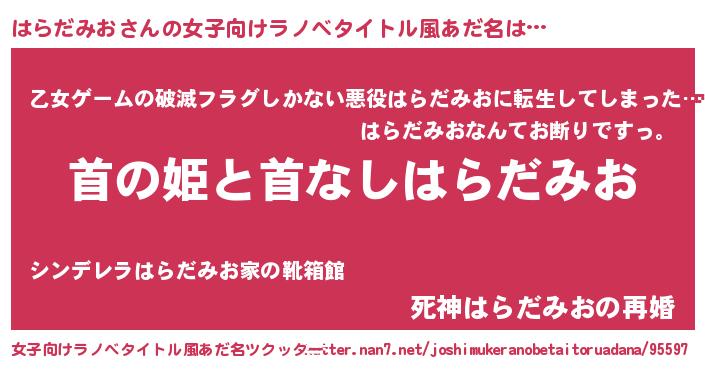 | 男性向けラノベタイトル風あだ名 | 『はたらくはらだみおさま!』 |