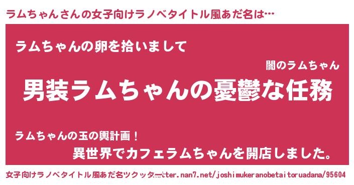 | 男性向けラノベタイトル風あだ名 | 『冴えないラムちゃんの育てかた』 |