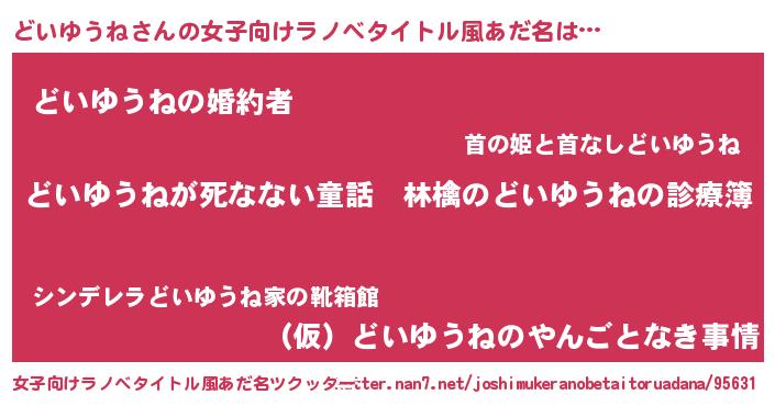 | 意味不明あだ名 | 『住所不定無職どいゆうね(13歳)』 |