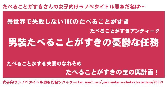 | 男性向けラノベタイトル風あだ名 | 『うちのたべることがすきが世界を掌握している!』 |