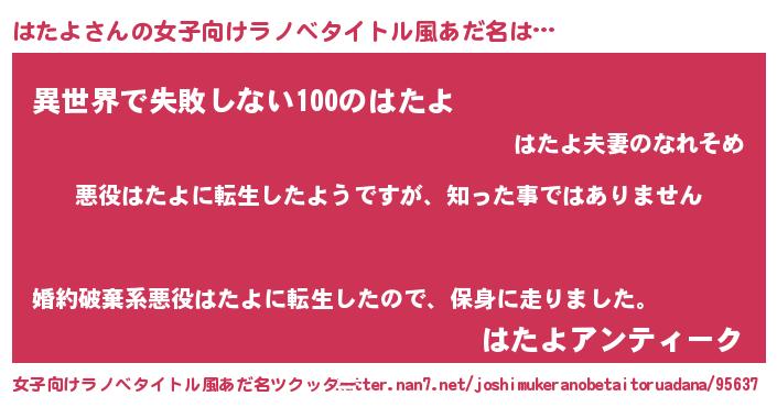 | 意味不明あだ名 | 『住所不定無職はたよ(84歳)』『自称はたよ』 |