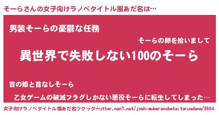 | 胡散臭い通販商品みたいなあだ名 | 『絶対に幸福をもたらす健康食品…その名も「そーら」』 |