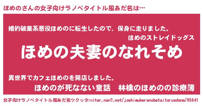 | ヘコむあだ名 | 『ほめの(遠い目)』『ほめっちょ』 |