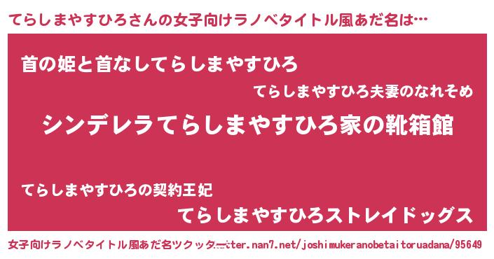 | 意味不明あだ名 | 『自称てらしまやすひろ』 |
