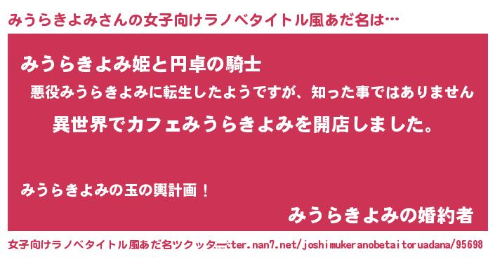 | 意味不明あだ名 | 『永久保存みうらきよみ』 |