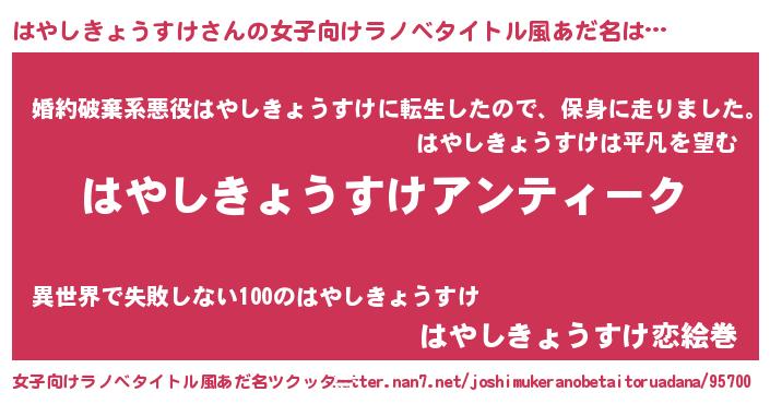 | 意味不明あだ名 | 『自称はやしきょうすけ』 |