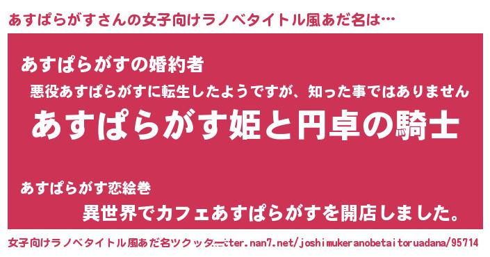 | 男性向けラノベタイトル風あだ名 | 『あすぱらがすの憂鬱』 |