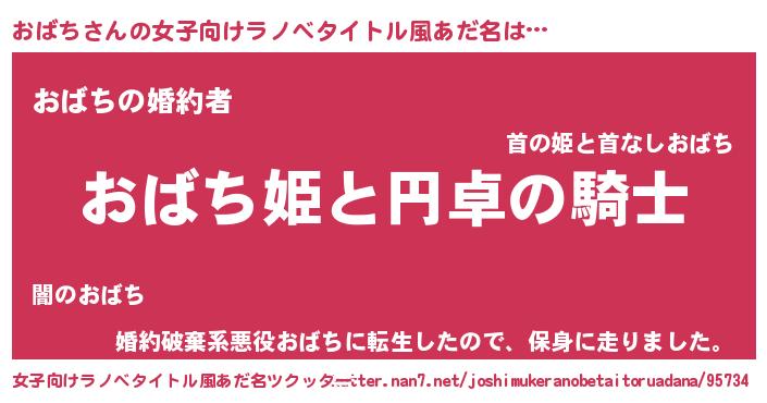 | 男性向けラノベタイトル風あだ名 | 『オバチアートオンライン』 |