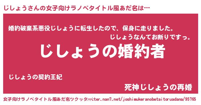 | 男性向けラノベタイトル風あだ名 | 『うちの娘の為ならば、俺はもしかしたらじしょうも倒せるかもしれない。』 |