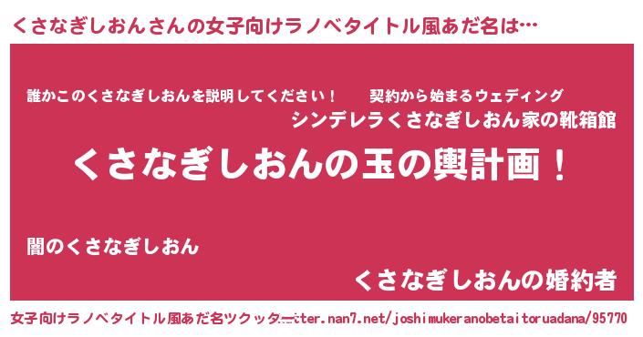 | 胡散臭い通販商品みたいなあだ名 | 『モテモテ間違いなし霊験あらたかなお札…その名も「くさなぎしおん」』 |