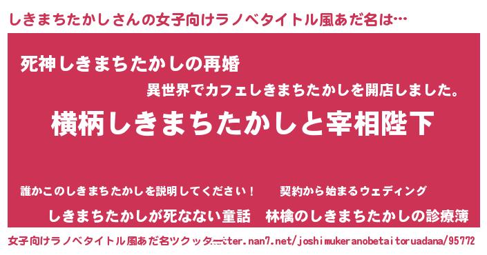 | 男性向けラノベタイトル風あだ名 | 『しきまちたかしに滅ぼされるだけの簡単なお仕事です』 |