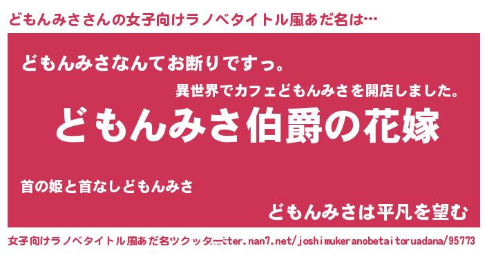 | 男性向けラノベタイトル風あだ名 | 『うちの娘の為ならば、俺はもしかしたらどもんみさも倒せるかもしれない。』 |