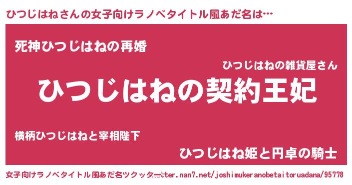 | 男性向けラノベタイトル風あだ名 | 『ひつじはねという概念が存在しない退屈な世界 』 |
