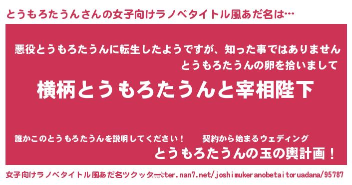 | 男性向けラノベタイトル風あだ名 | 『とうもろたうんに滅ぼされるだけの簡単なお仕事です』 |
