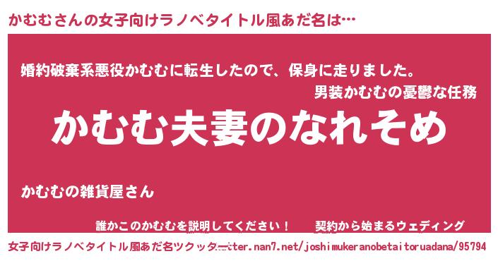 | 男性向けラノベタイトル風あだ名 | 『おまえをオタクにしてやるから、俺をかむむにしてくれ! 』 |