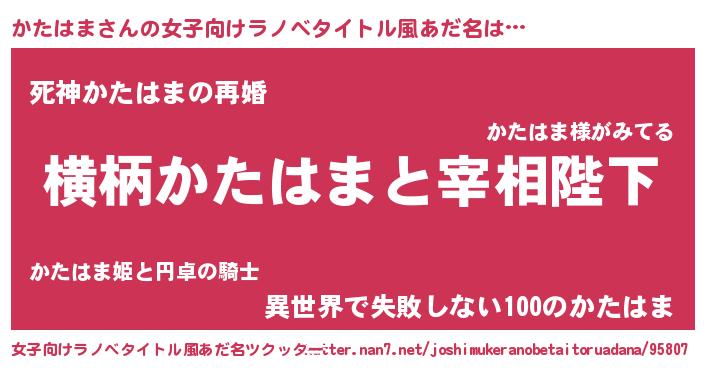 | ヘコむあだ名 | 『かたはま(爆)』『かたお』『豆乳』 |