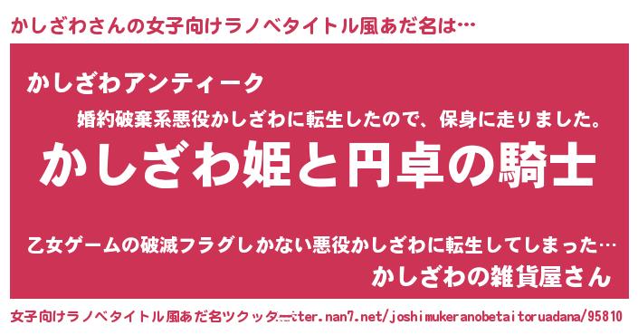 | 男性向けラノベタイトル風あだ名 | 『かしざわの憂鬱』 |