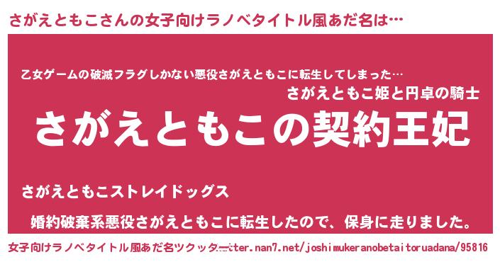 | 男性向けラノベタイトル風あだ名 | 『さがえともこという概念が存在しない退屈な世界 』 |