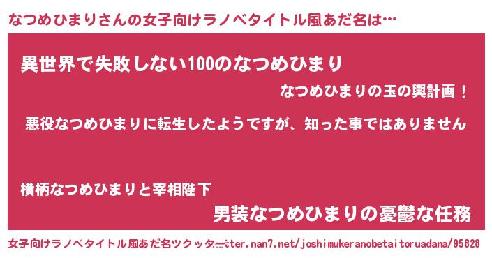| 男性向けラノベタイトル風あだ名 | 『この素晴らしい世界になつめひまりを!』 |