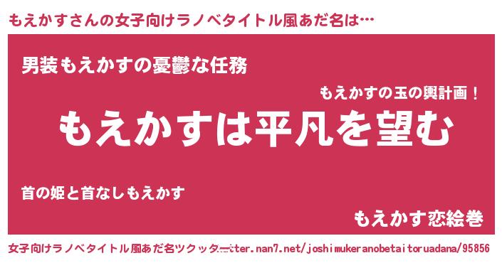 | 胡散臭い通販商品みたいなあだ名 | 『信頼と実績のサプリメント…その名も「もえかす」』 |