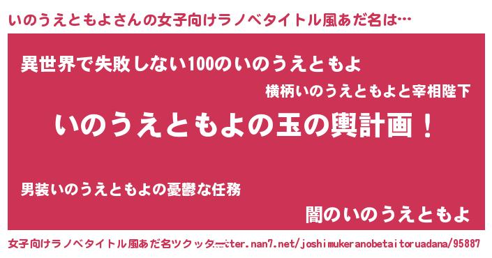 | ヘコむあだ名 | 『いのうえともよ(爆)』『いのにー』 |
